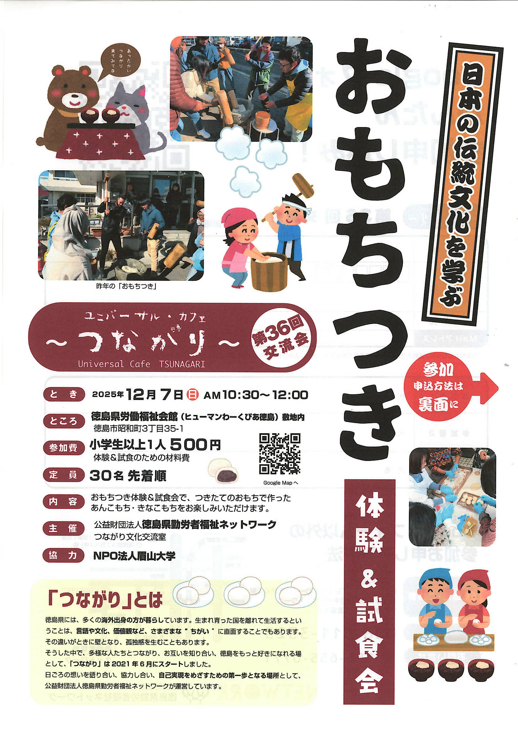第36回つながり交流会にて「おもちつき体験&試食会」を開催します。