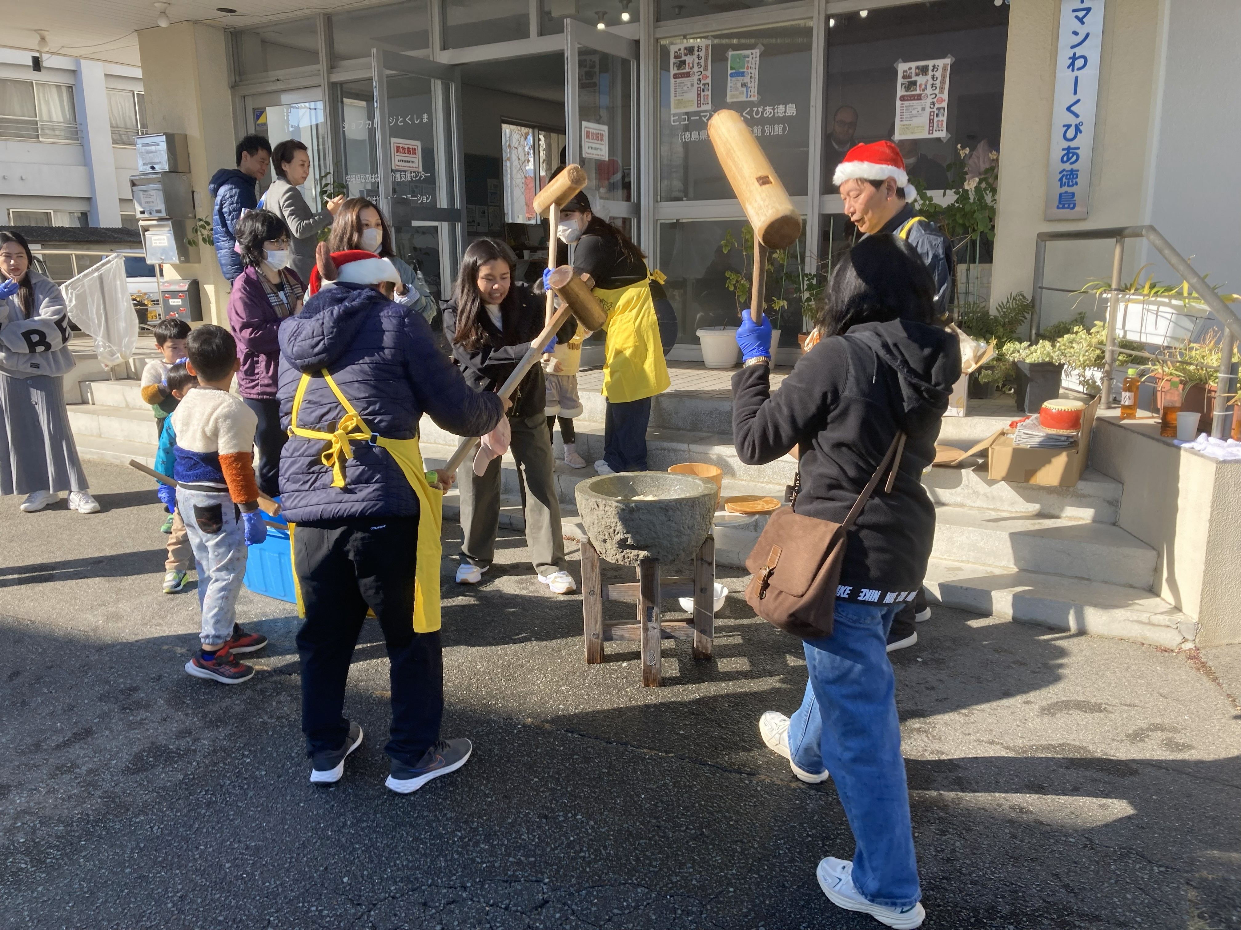 徳島県在住の外国出身の方々に、おもちつきの体験とおもちの試食を通じ、日本の伝統文化とお正月の雰囲気を知っていただくことを目的に開催しました。