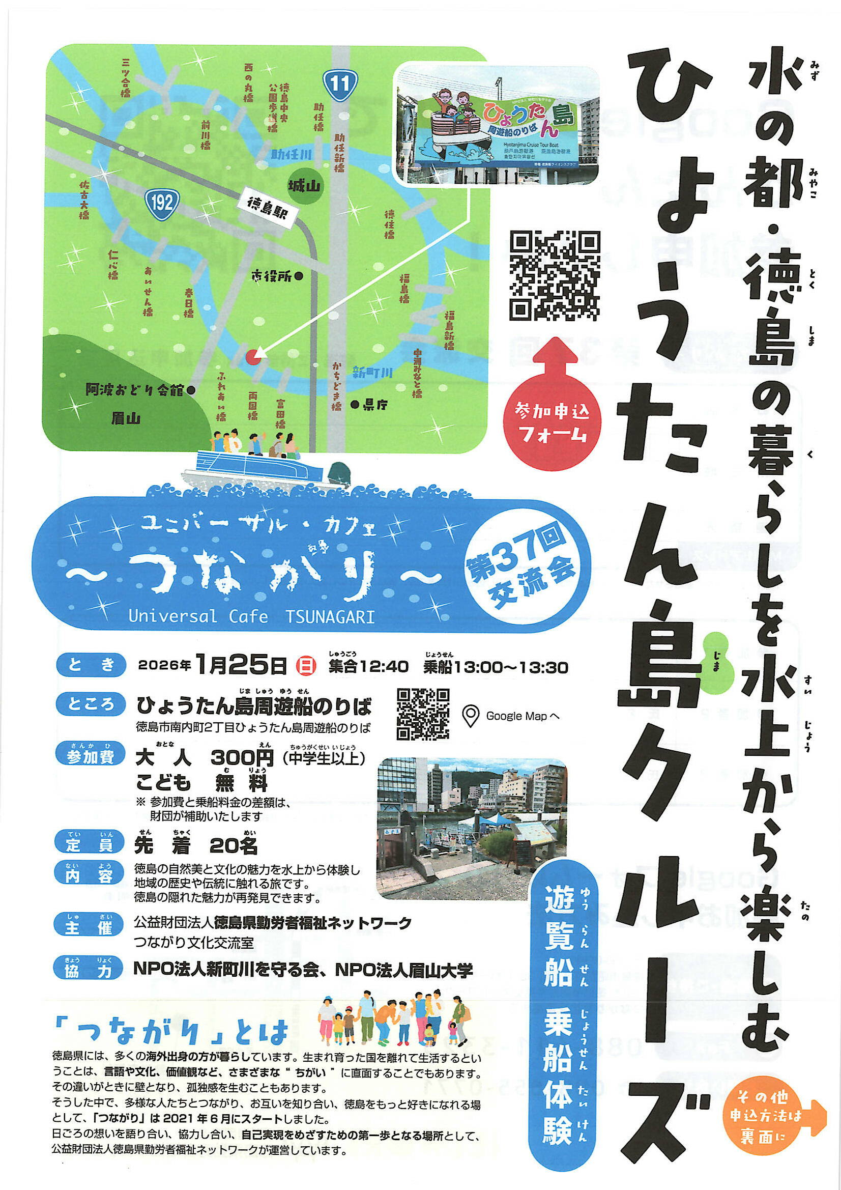 第37回つながり交流会にて「ひょうたん島クルーズ遊覧船乗船体験」を開催します。